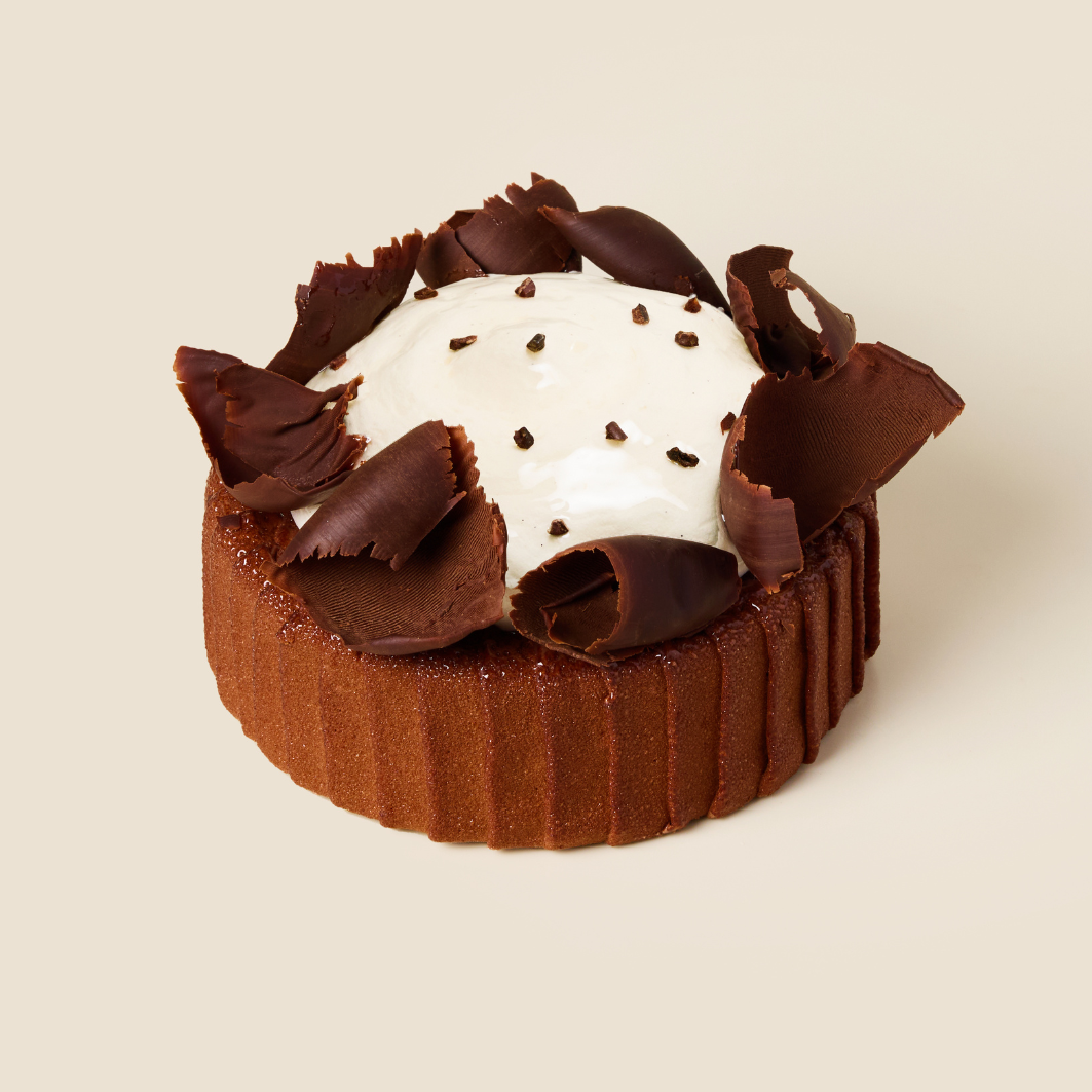 To make this one-of-a-kind chocolate cake, I paired it with the earthy, nutty roasted buckwheat (sobacha) delicate sponge. The foundation features a dark chocolate crunch, layered with intense Valrhona Guanaja 70% mousse and my signature tonka bean cremeux. To balance these deep flavours, I've crowned it with mascarpone chantilly and finished with dark chocolate curls and bitter cocoa nibs for texture. This is for those who appreciate chocolate in its most sophisticated form.